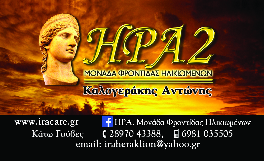Οι Μονάδες Φροντίδας Ηλικιωμένων ΗΡΑ 1 και ΗΡΑ 2 λειτουργούν  στον Πόρο και στις Γούβες αντίστοιχα με σκοπό την παροχή φροντίδας και την αναβάθμιση της Ποιότητας Ζωής ηλικιωμένων ατόμων που δεν έχουν την ικανότητα αυτόνομης διαβίωσης. Σε χώρους υψηλής αισθητικής, παρέχεται ένα υψηλό επίπεδο διαβίωσης στους ηλικιωμένους, που διασφαλίζεται από τις κατάλληλες υποδομές, το έμπειρο προσωπικό, και τη φιλοσοφία των Μονάδων μας. Υπό την αιγίδα του διευθυντή μας κ. Αντώνη Καλογεράκη, οι ηλικιωμένοι βρίσκουν στις Μονάδες ΗΡΑ μια δεύτερη οικογένεια γεμάτη αγάπη και σεβασμό για την Τρίτη Ηλικία.