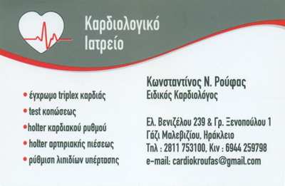 Υπερηχογραφήματα, τεστ κοπώσεως, holter, πλήρης καρδιολογικός έλεγχος.